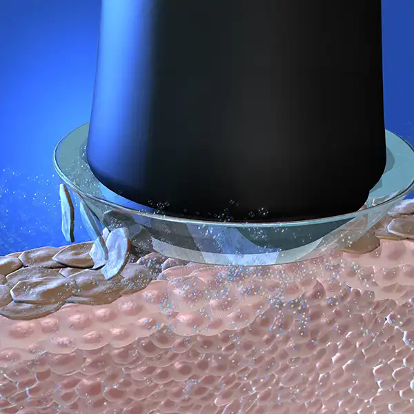 Erneuert die Epidermis. Diese minimal invasive Behandlung trägt Teile der obersten Hornschicht sanft ab und aktiviert dadurch den Hauterneuerungsprozess. Aknenarben