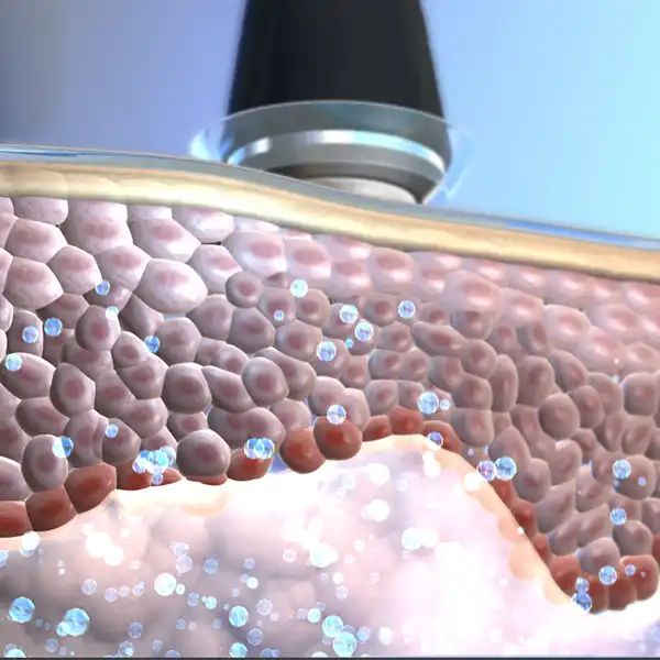 Ultraschall erhöht die Durchlässigkeit der Haut. Dadurch können Wirkstoffe optimal eingeschleust werden. Durch die Aktivierung des Zellstoffwechsels werden diese umfassend von der Haut absorbiert.